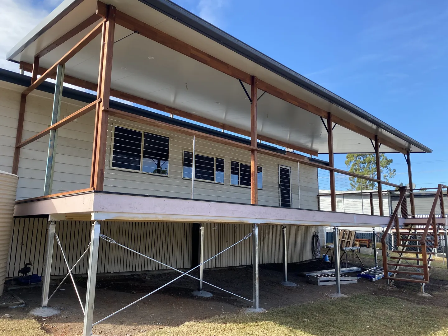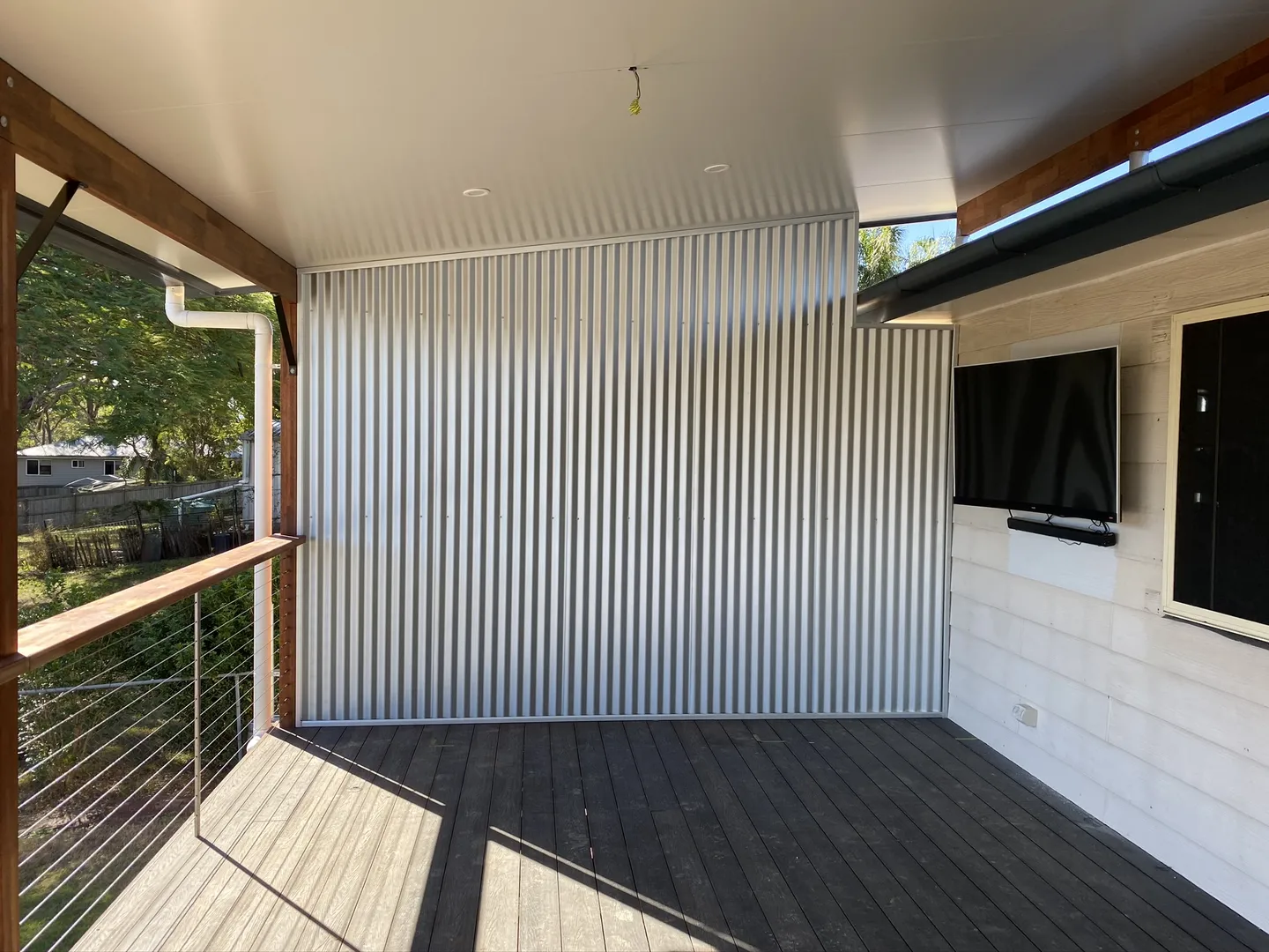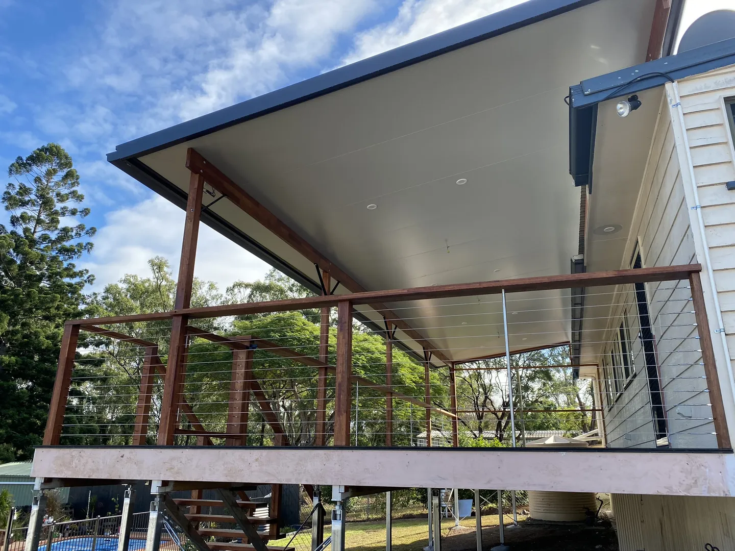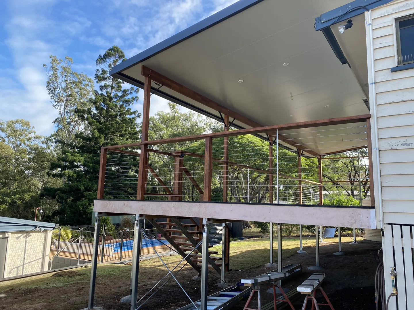 Addition of timber deck with insulated panel flyover roof.