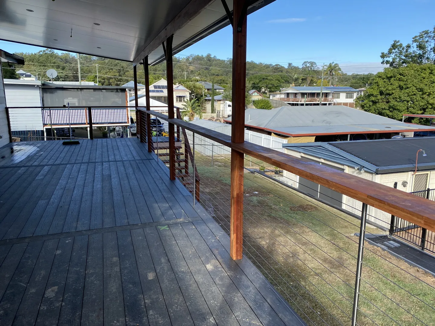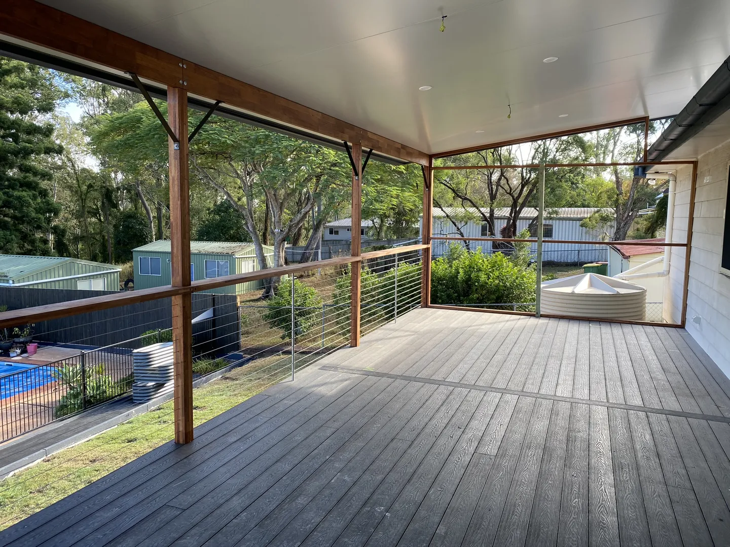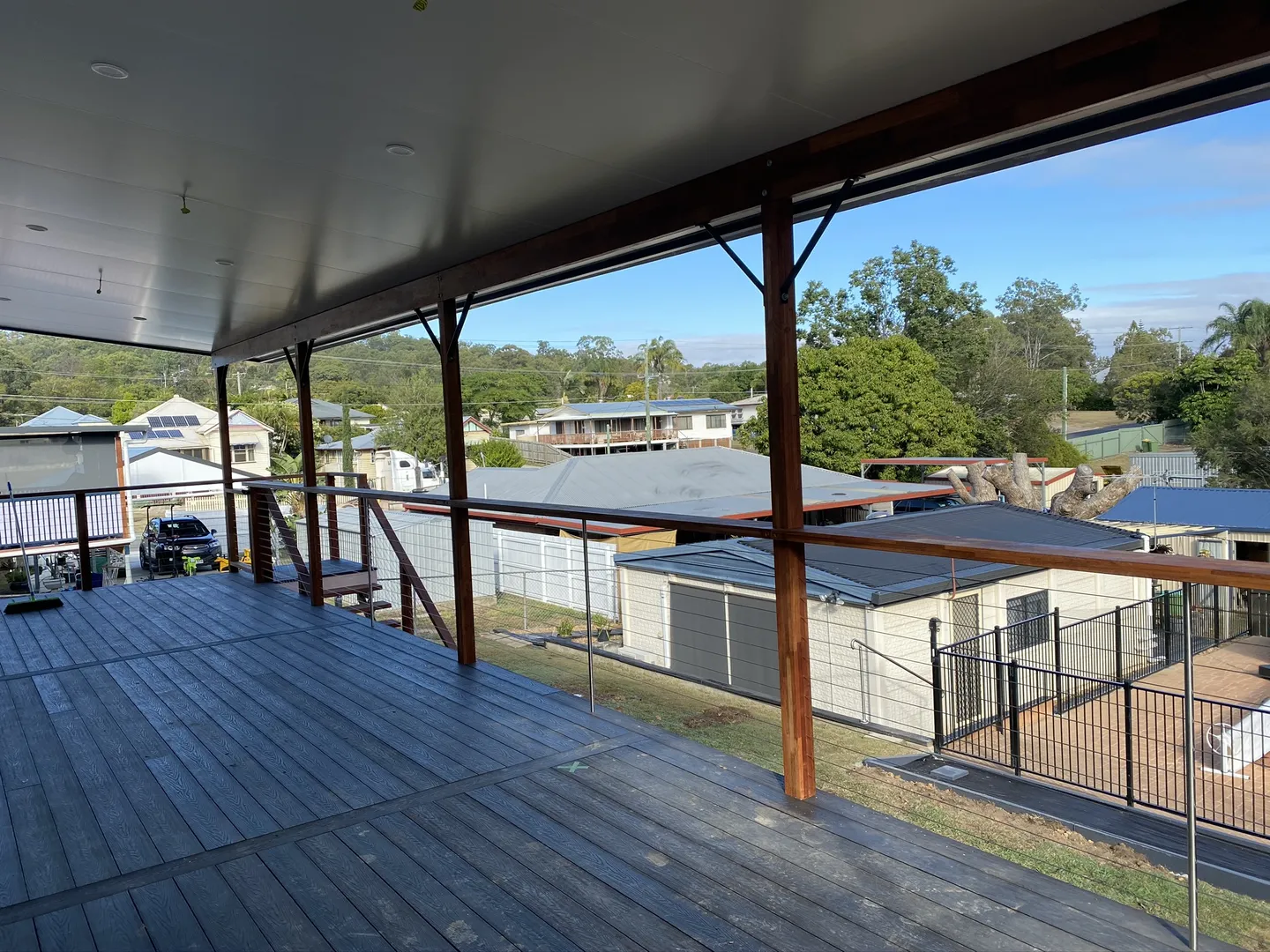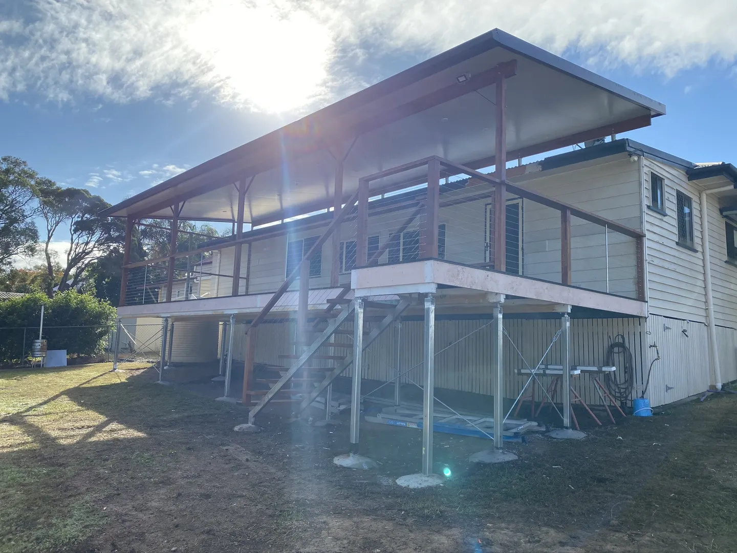 Addition of timber deck with insulated panel flyover roof.