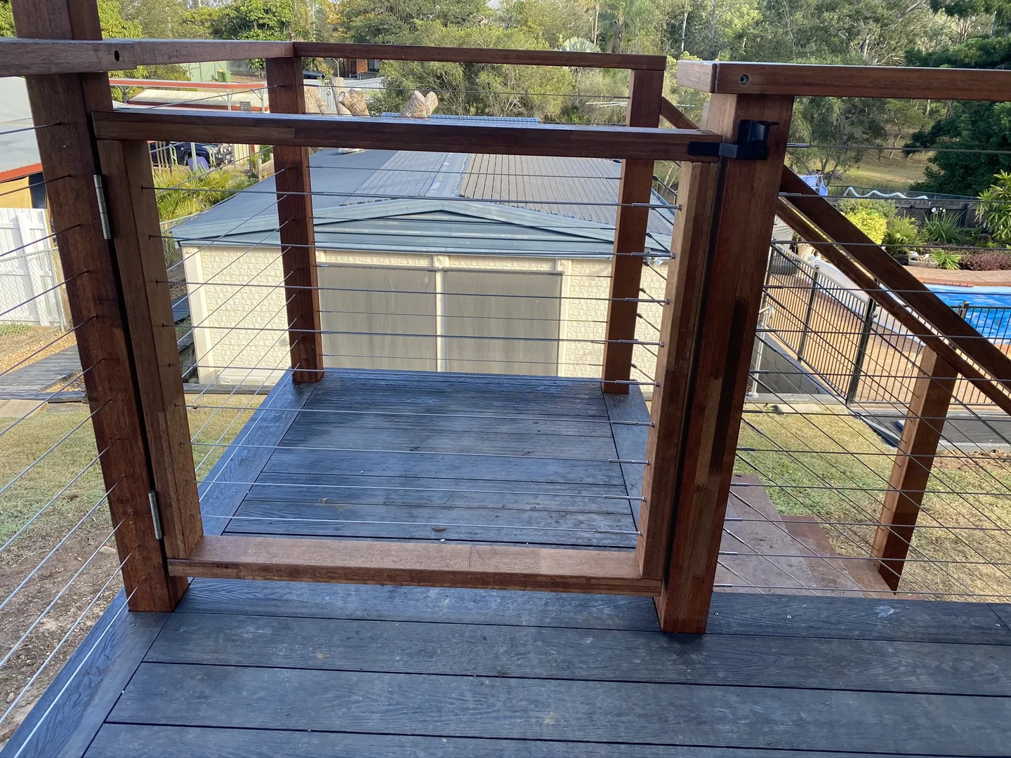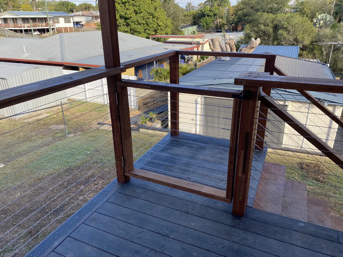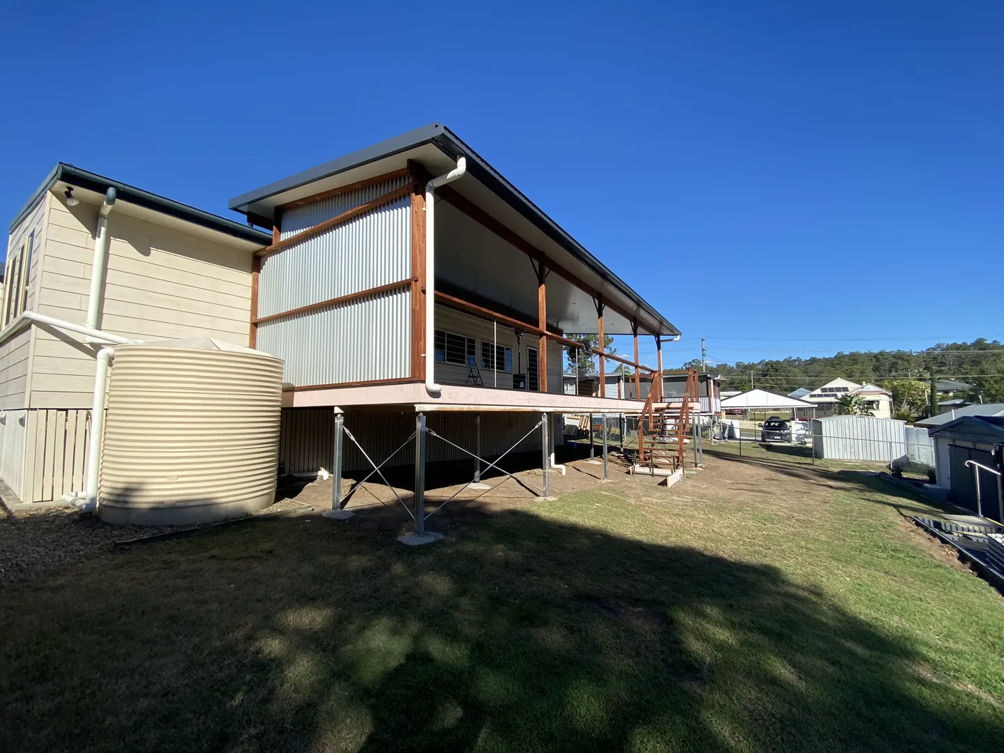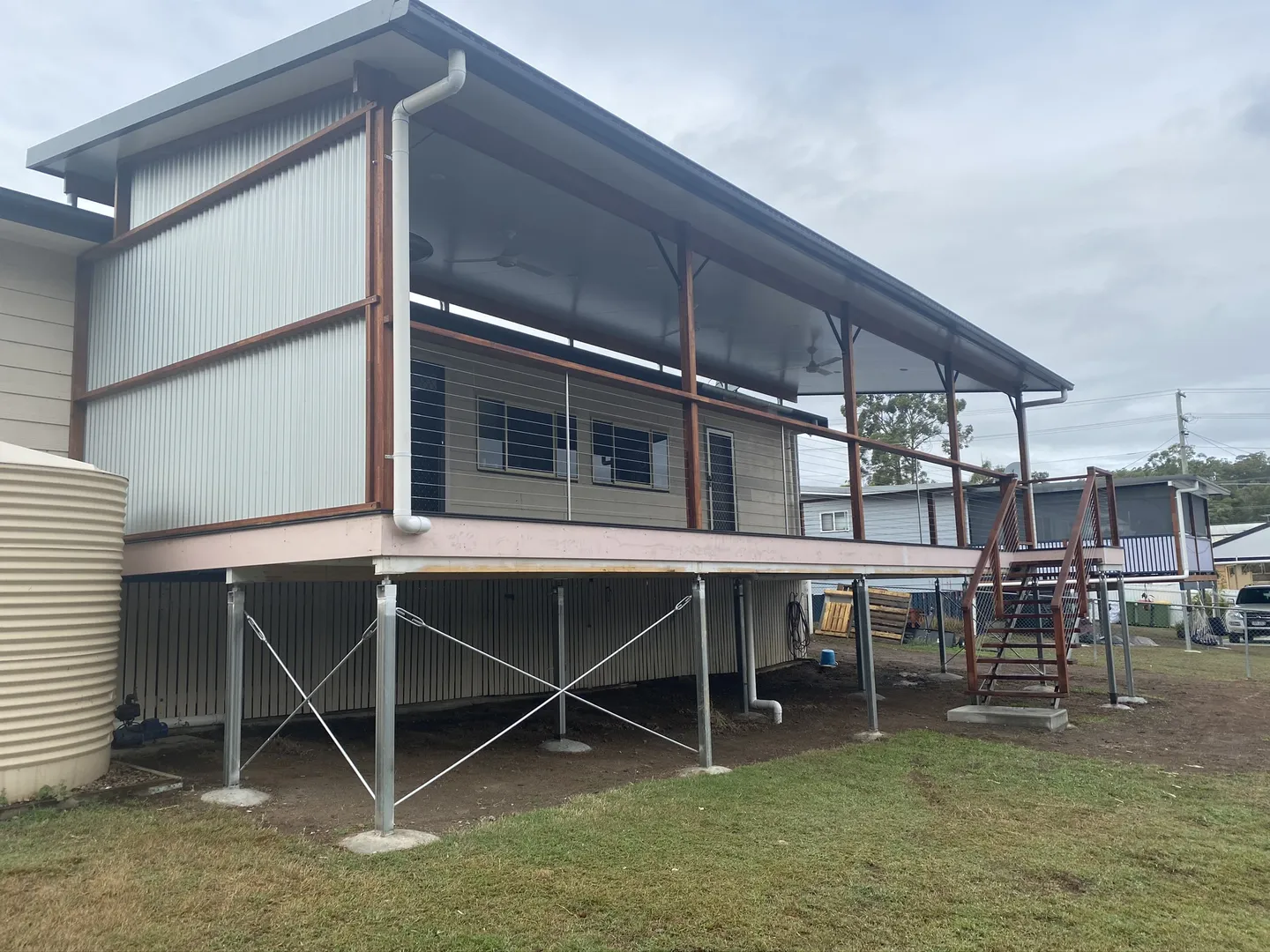 Addition of timber deck with insulated panel flyover roof.